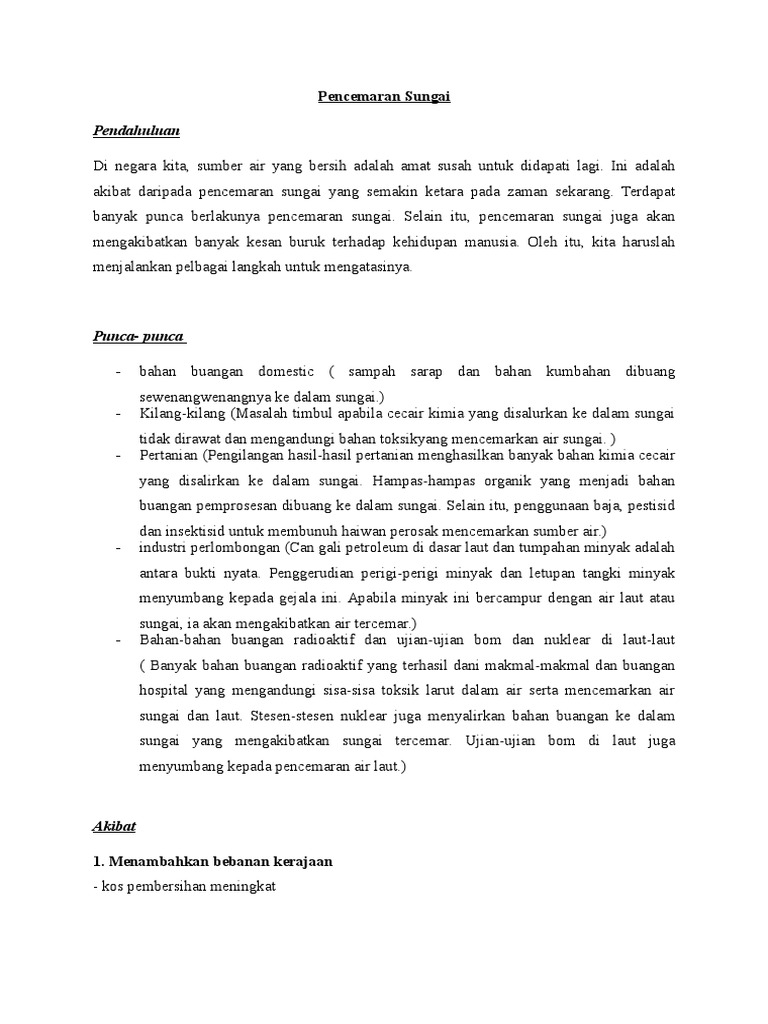 Teks Karangan Pencemaran Air Untuk Tahun 5